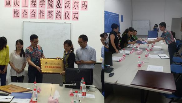 经过沟通,沃尔玛(重庆)购物广场有限公司跟重庆工程学院达成校企合作协议,并进行了签约。签约仪式上,沃尔玛授予重庆工程学院“沃尔玛人才培养基地”的牌匾,我校授予沃尔玛“重庆工程学院学生就业实习基地”的牌匾。