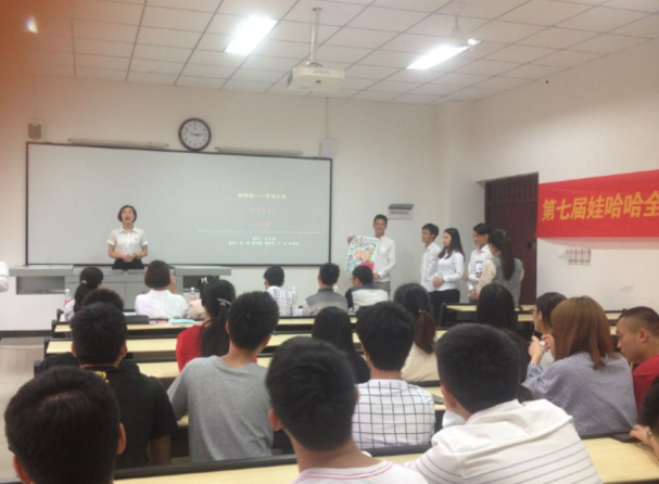 2016年5月13日星期五下午管理学院市场营销专业第七届娃哈哈全国大学生创意营销实践大赛工程学院赛区决赛暨重庆工程学院第二届“娃哈哈杯”市场营销技能大赛在6教107教室顺利开展。本次比赛邀请娃哈哈重庆分公司高校市场拓展部王乐经理、管理学院工商管理系部分教师担任评委老师。