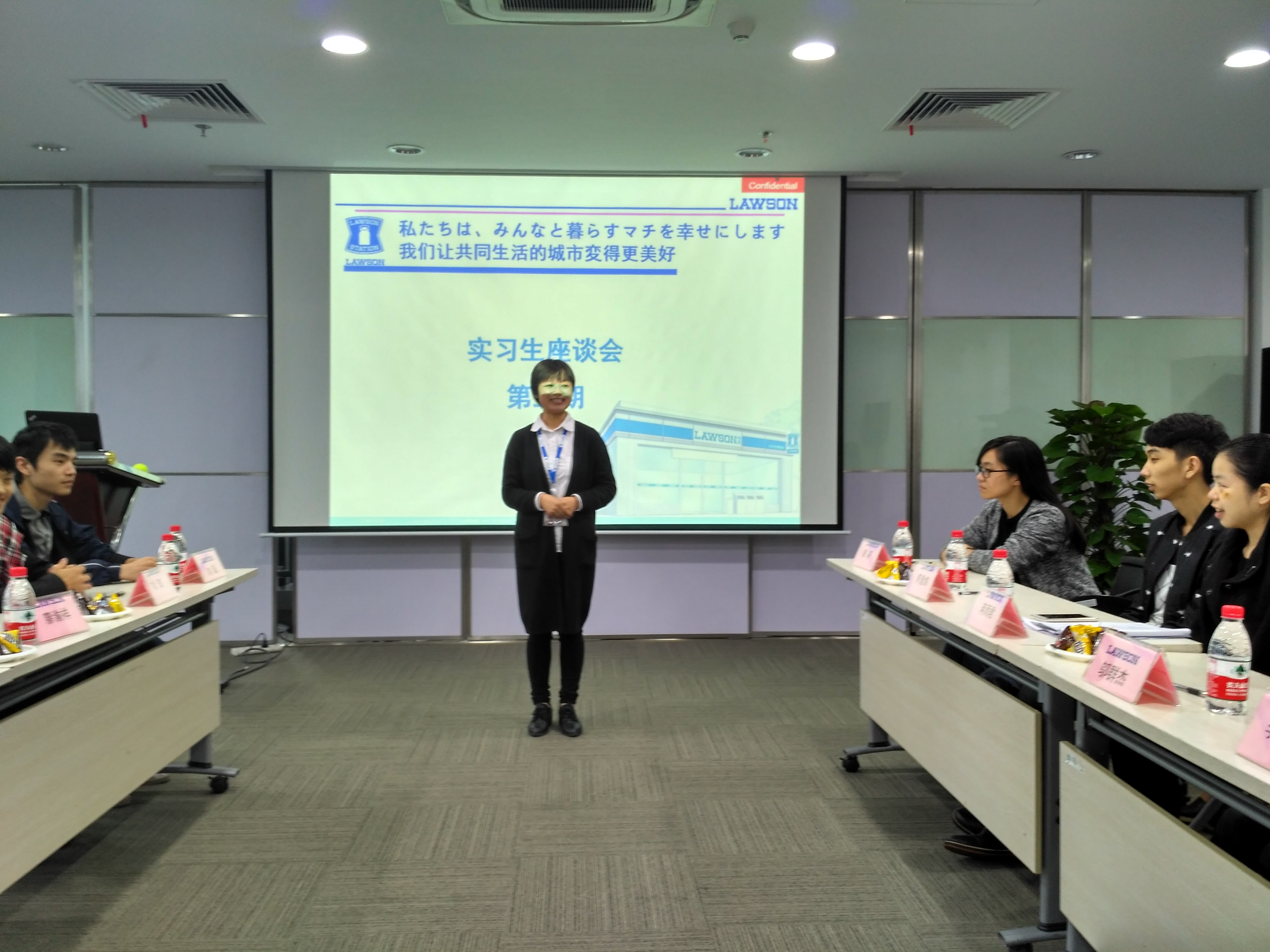 参加此次座谈会的有罗森便利店有限公司人事部部长燕霞、运营部部长陈桂红、运营部教育培训课长杨俊玲,管理学院刘玲慧老师、罗雪老师。