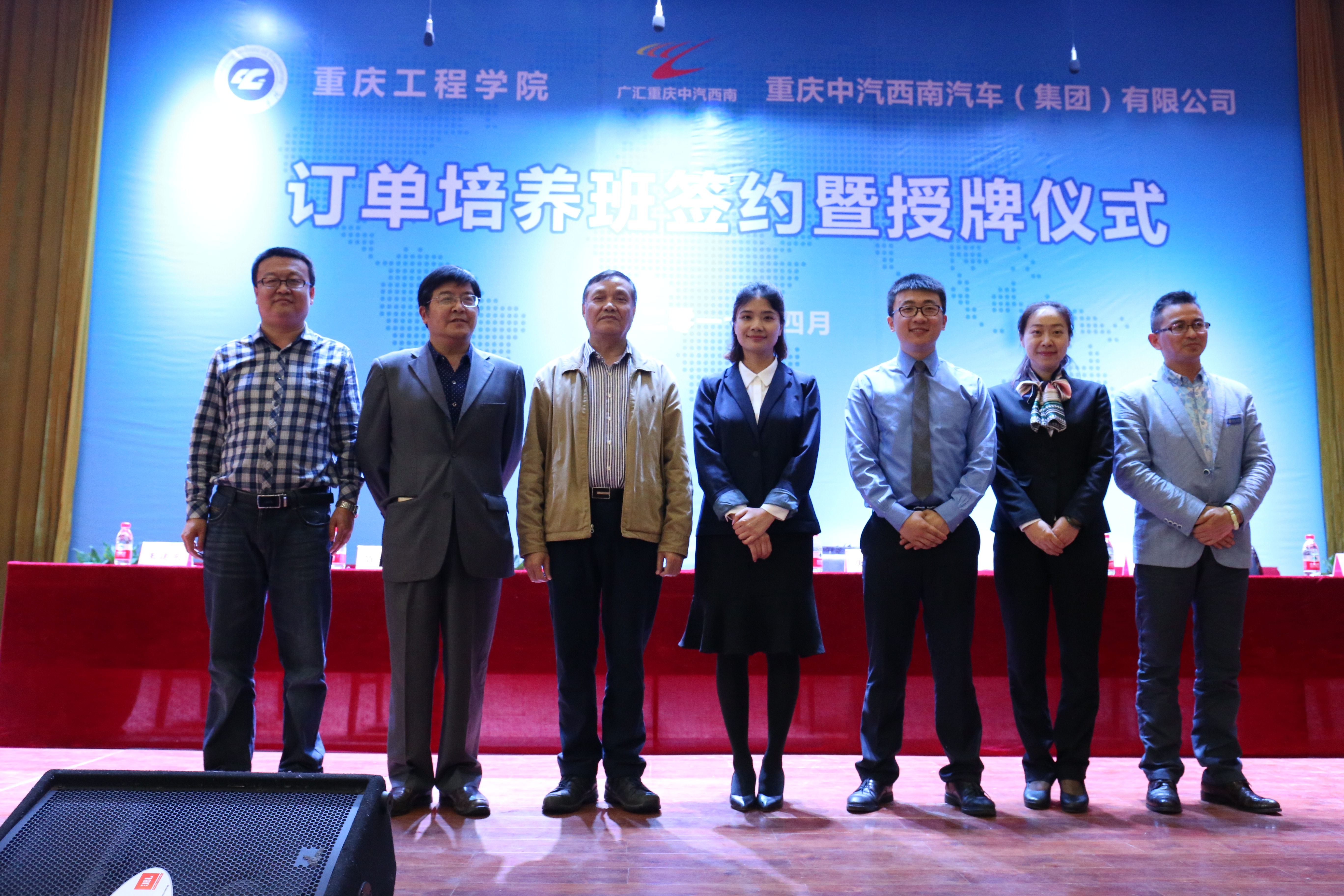 2017年4月26日,重庆工程学院与重庆中汽西南汽车(集团)有限公司在学术报告厅举行了校企合作订单班签约及授牌仪式,出席仪式的领导有学校校长唐一科、副校长程昌华、教务处处长胡继志、招生就业处处长王建东、管理学院执行院长简玉刚、中汽西南人力行政总监李佳、招聘主管刘浏、一汽丰田销售经理邓多,同时工商管理系全体教师和市场营销、财务管理专业的学生参加了此次仪式。