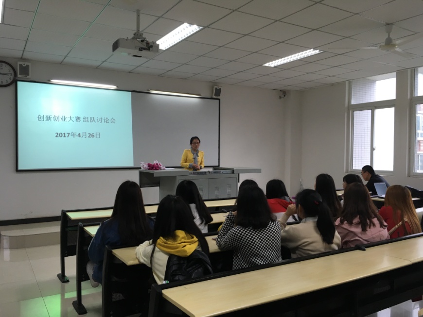 为了培养财务管理专业学生创新意识、创新思维、创业能力和创业精神,帮助他们树立创业信心,实现创业梦想。我专业积极响应学院《重庆工程学院关于组织参加教育部第三届中国“互联网+”大学生创新创业大赛的通知》,全力助推创业大赛的号召。在4月26日下午3:00在6206教室开展“创新创业大赛组队讨论会”。参与本次讨论会的人员有:财务管理教研室全体教师以及参赛学生。