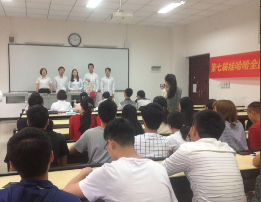 (市场营销教研室 朱凤)2016年5月13日星期五下午管理学院市场营销专业第七届娃哈哈全国大学生创意营销实践大赛工程学院赛区决赛暨重庆工程学院第二届“娃哈哈杯”市场营销技能大赛在6教107教室顺利开展。本次比赛邀请娃哈哈重庆分公司高校市场拓展部王乐经理、管理学院工商管理系部分教师担任评委老师。