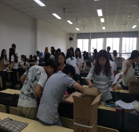 (连锁经营管理 刘章勇)2016年5月18日星期三下午13:30,6教201教室连锁经营管理专业“储运一体化方案设计及实施”技能大赛如火如荼地进行,14级连锁经营管理专业11支参赛队伍计83位同学按照抽选竞赛方案,分工完成商品拣选、复核、发货清单制作、包装、发货单据填制、配送线路设计、配送实施、客户签收、签收回执装订归档。