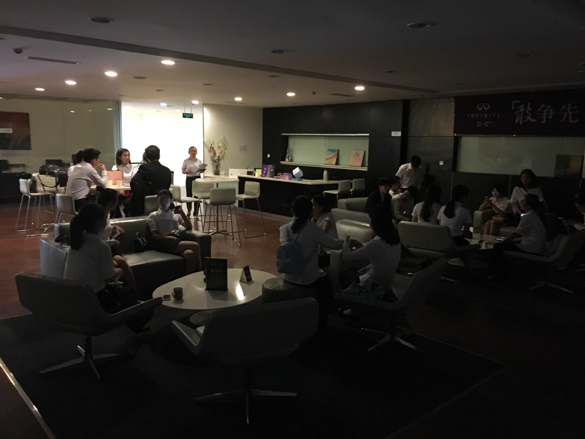 路上,同学们都为院领导给大家安排了校车送行而感到由衷的高兴和自豪。同时,班主任在车上给同学们分享了面试技巧,并提醒同学们在回程时注意人身安全,在面试结束后结伴返回学校。校车在1:20准时抵达面试现场,面试现场在英菲尼迪4S店二楼的办公区内进行,轻奢典雅的4S店点起了同学们心中的向往之情,纷纷表达出要进入中汽西南实习决心和愿景。经过与中汽西南人力资源招聘主管刘浏的简单有效的对接后,同学们随即进入了紧张而激烈的面试流程中。