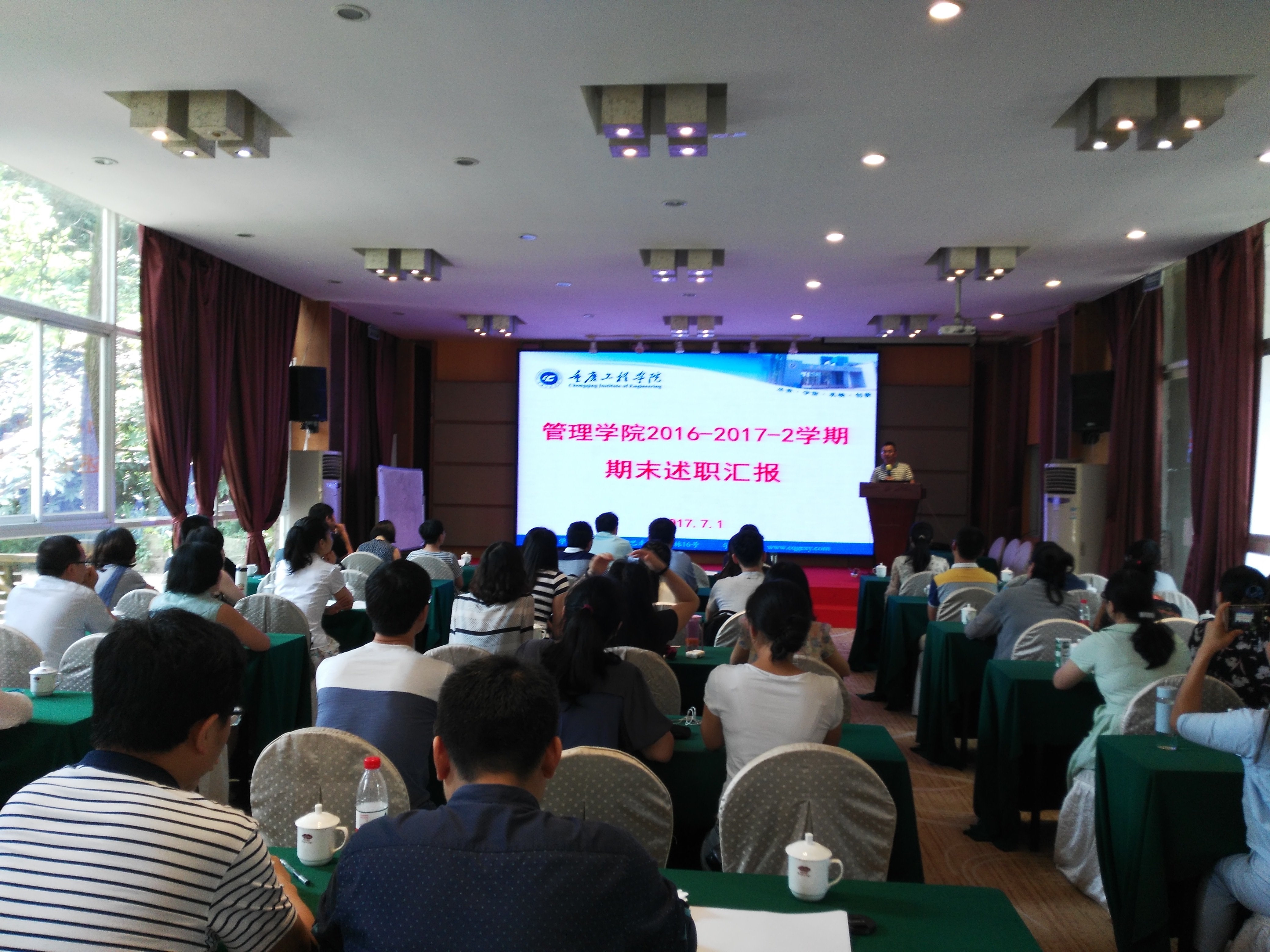 最后,管理学院院长简玉刚对学院这学期的工作作了总结,提出了心在远方,路在脚下的核心思想,同时,以问题的形式向管理学院全体教职工提出:一是管理学院目前遇到最大的问题什么是工作?工作就是解决问题。要求教职工们从政府专业管控、学校定位方向以及学院专业定位等方面思考。二是从我们学院的核心工作出发,巩固学院的竞争力。三是我们学院专业向互联网+的方向转型。四是对学院主要力量—师资队伍提出要求,要求自我提升,加强自身的能力。五是学院发展问题,坚持产教结合、校企合作。六是对下一学期工作的思考,围绕2017年年度考核目标,拿下四连冠。