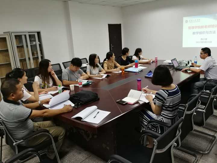 2017年9月18日,工商管理教研室主任周小波老师在管理学院三教313会议室开展新教师培训,此次培训专题为教学组织与方法。