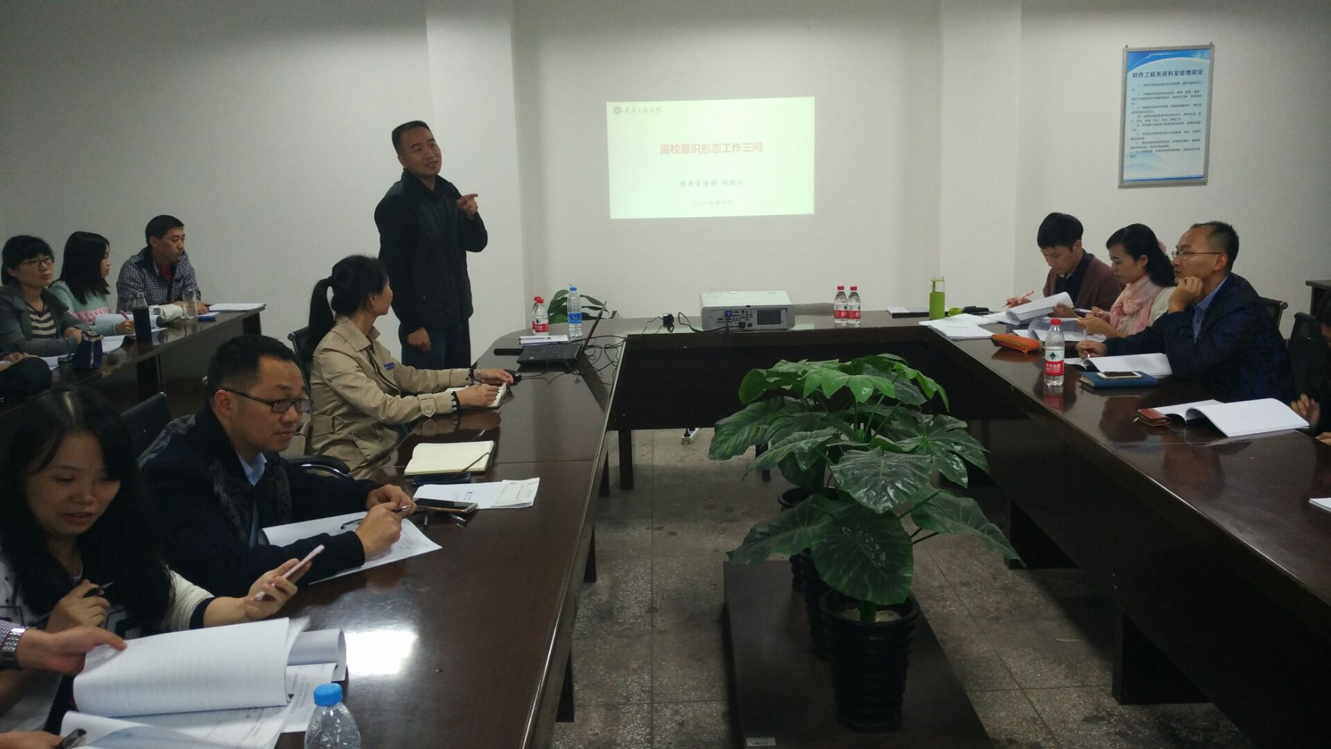为进一步提升师德师风素养,2017年10月11日下午16:00-17:00,学校宣传部长刘胜江在管理学院3401会议室开展高校意识形态培训,本次培训由管理学院办公室主任陈娟主持。