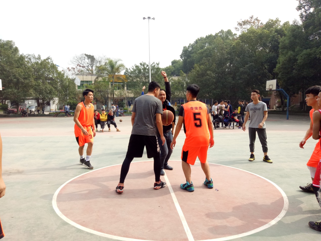 主持人宣布篮球争霸赛开始,一声哨响,管理学院党总支部书记熊力将篮球抛向空中,双方球员一跃而起比赛正式开始,激烈的拼抢,潇洒的转身,默契的配合,每一次精彩的进球都赢得观众一片掌声,第一场比赛段秋林老师队伍vs宋曼老师队伍。最终段秋林老师队伍以56:29 分拿下第一场胜利。