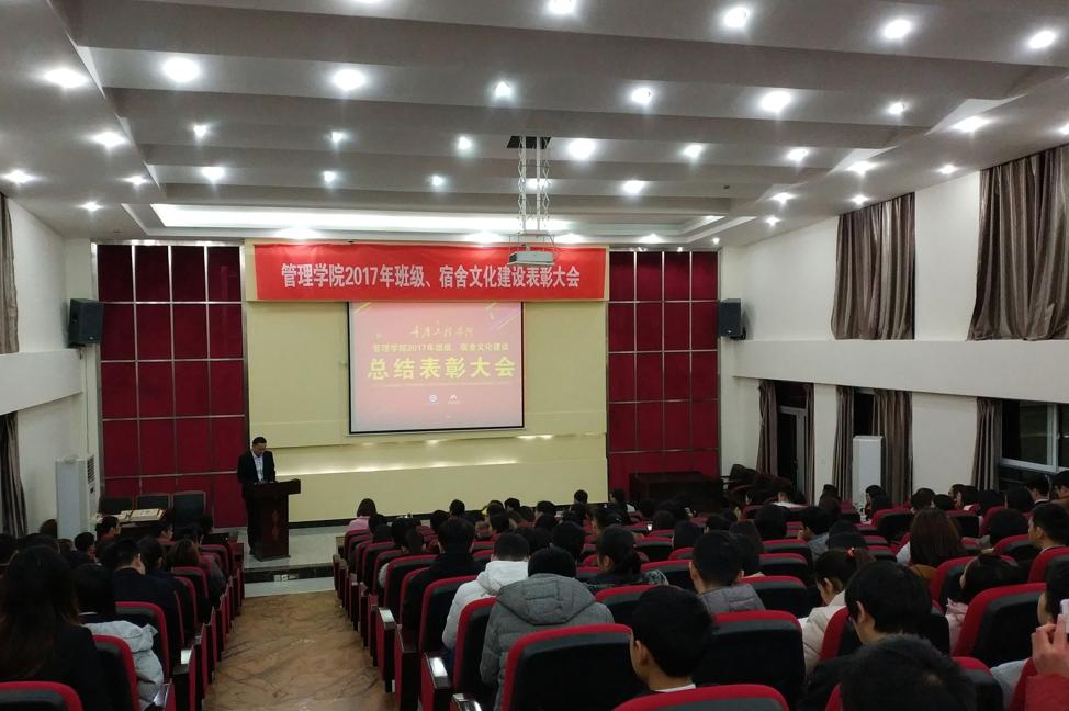 为了总结和表彰管理学院本年度班级、宿舍文化建设,12月19日18:30,管理学院在行政楼阶梯报告厅举行2017年班级、宿舍文化建设总结表彰大会。大会由学工办主任付睿主持。