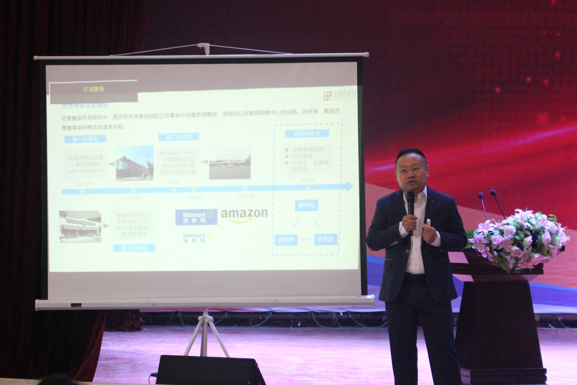 最后,三福百货西南大区总经理黄福明开展了《浅谈新零售》的主题讲座,并开展了2015级订单班宣讲。黄总从新零售的起因,现状和发展三个方面分享了他对新零售的见解,三福百货作为一家有着26年历史的连锁企业,在零售行业有着很深的底蕴,也在积极的关注行业发展,拥抱新零售。同时黄总对三福百货的发展历史、经营范围、经营理念以及定单培养模式、薪资待遇、晋升通道等都进行了详细介绍,让同学们对三福百货有了进一步的了解。 一直以来,我校高度重视校企合作、产教结合的人才培养模式探索,管理学院更是率先在校企合作模式以及校企合作的深度拓展方面做了大量探索,同时,这种教学改革也得到了社会各界企业,特别是三福百货的大力支持,得到了同学们的高度认可,取得了丰硕的成果。预祝我校与三福百货的校企合作达到新的高度,也希望同学们进入三福订单班能学有所获、做有所成!