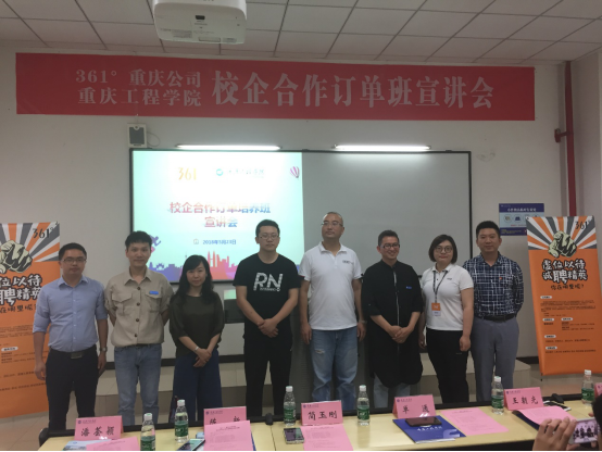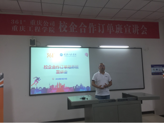 本网讯(文/图 邹卒)5月23日,361°重庆公司在我校举行了校企合作订单班宣讲会,并在宣讲会后进行了现场面试,总计16名同学通过了严格的面试筛选将进入“361°订单班”开始正式实习。
