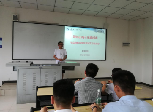 (管理学院 陈娟) 7月3日18:00,管理学院在第六教学楼117教室召开了领域机构、永辉超市订单班实习动员会,管理学院院长简玉刚、党总支书记邹均、实习实训中心主任陈可、工商管理系主任周小波等人参加了会议。