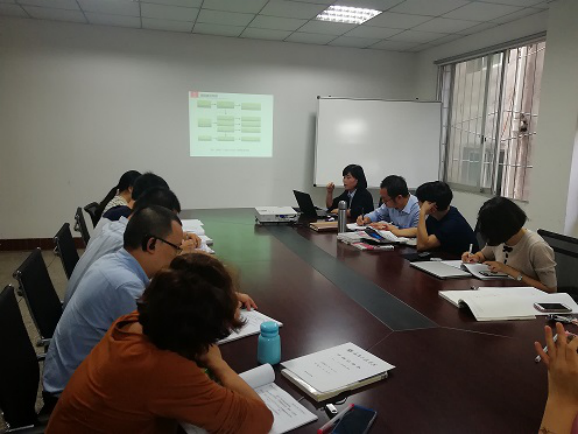 《电子商务物流与供应链管理》、《网络广告理论与实务》、《大数据应用》、《网站建设与服务技能实训》共计四门课程的课程建设负责人依次汇报了所建课程的团队与任务分工、课程性质与定位、教材选取、课程目标与内容体系、课程考核等内容并且展示了课程建设成果。在点评了各门课程在汇报中暴露出的问题后,陈可副院长提出依据电子商务专业人才培养方案提炼课程目标、选取课程内容、遵照规范完善资料的基本工作思路。