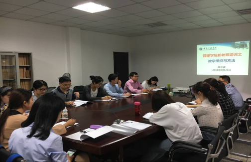 2018年9月21日,工商管理教研室主任周小波老师在管理学院三教313会议室开展新教师培训,此次培训专题为教学组织与方法。