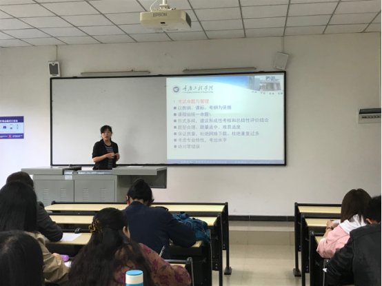 首先,培训教师朱凤老师对在座的全体新入职教师说明了考试工作的重要性以及严肃对待考试工作的意义。然后,朱凤老师以重庆工程学院考试管理办法入手,说明考试管理的任务以及要求。朱老师详细的介绍了出题、阅卷到成绩评定的方方面面的工作内容,同时特别指出了考试工作中可能出现的问题、需要注意的事项,尤其是课题组命题试卷时要注意合作与统一。朱老师结合以往考试工作中教师遇到的问题与个人的经验为新入职教师分享了考试工作中绝不可以碰触的禁区,也耐心细致地解答了新入职教师的疑问。最后,朱老师希望所有新入职的教师可以严肃认真的对待考试工作,在绝对零错误的基础上,能够考虑专业特性考出水平。