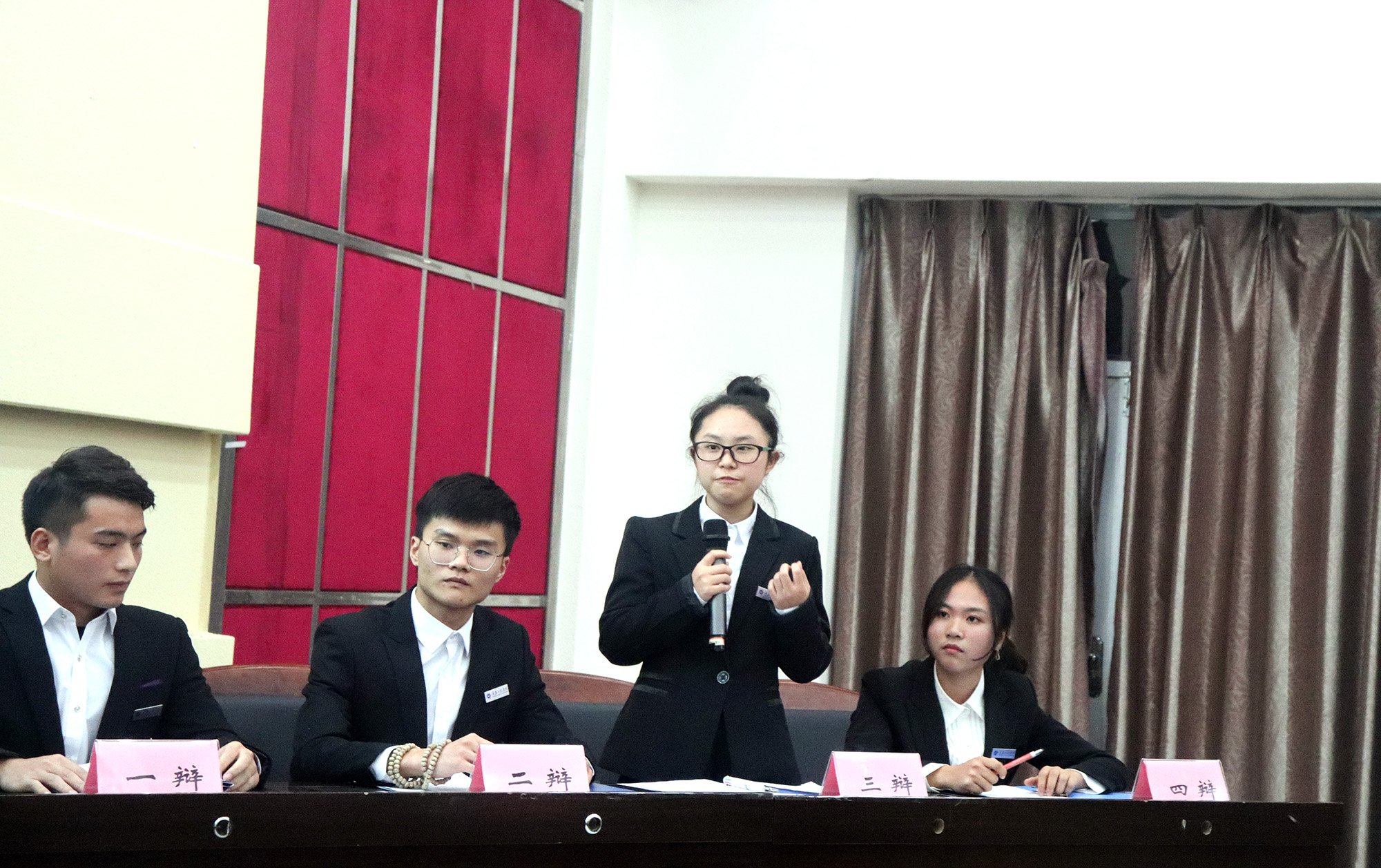 本次比赛共有来自管理学院17级本科3支队伍参赛,每支队伍都满怀信心、斗志昂扬。首场比赛就日前社会热点话题“重庆万州公交车事件”点燃,黄平老师的指导的队伍—智联队站正方观点“构建公交文明依靠个人素养”对阵孟佳老师指导的队伍——论者善辩队站反方观点“构建公交文明依靠社会制度”;第二场比赛,双方就“安徽注水牛屠宰事件”展开辩论,智联队再度发力,认为“在经济活动中诚信依靠自律”,而秦丽老师指导的队伍—言辞万钧队坚持“在经济活动中诚信依靠他律”;在第三场辩论赛中,双方就日前“苏州马拉松比赛因志愿者递国旗而影响中国选手何引丽夺冠”这一热点事件展开辩论。言辞万钧队支持正方观点“爱国情怀的表达形式更重要”,论者善辩队支持反方观点“爱国情怀的表达内涵更重要”。比赛进行过程中,各位辩手旁征博引,妙语连珠,结合理论与现实进行论证,双方针锋相对互不相让,为大家奉献了一场有理有据的精彩辩论。