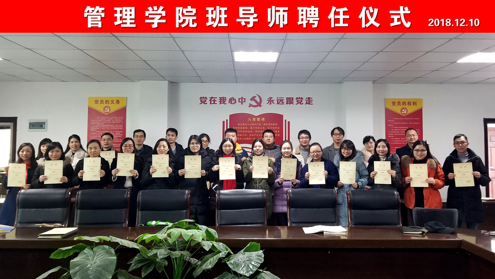 2018年12月10日13:00-14:00,管理学院在3401会议室举行了2018年度本科班导师聘任仪式暨2018-2019学年班导师第一次工作会议。全体新聘任的班导师和辅导员参加了此次会议。