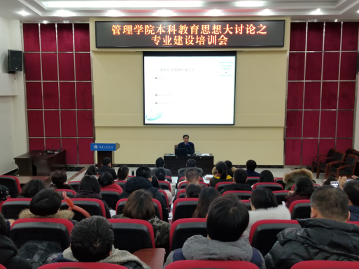 2019年1月4日,阶梯报告厅,管理学院组织召开了“新时代本科教育思想大讨论”活动之四:专业建设培训会(二),校外专家陈兴述教授为全院师生开展了题为《关于应用技术型本科院校课程建设问题》的专题培训。