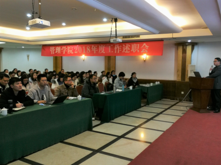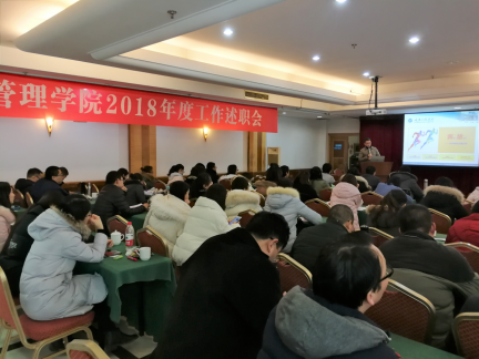 工商管理系、电子商务系和财务管理系系主任们、骨干教师以及辅导员老师们悉数汇报了本学期的各项工作、取得的成绩以及未来工作的展望与计划。简玉刚院长作了名为《奔跑、放心》的主题报告,对管理学院2018年整体工作作了总结,并对2019年的工作提出了目标和要求。会后的员工素质拓展活动进一步加强了教职工之间的交流,增强了大家的团队意识。