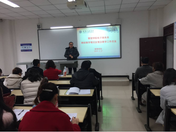 为做好期初的各项工作,保证新学期教学工作有序运行,2月27日14:20,在第6教学楼119教室,电子商务系组织开展了期初教学检查情况反馈及教学工作的交流会。