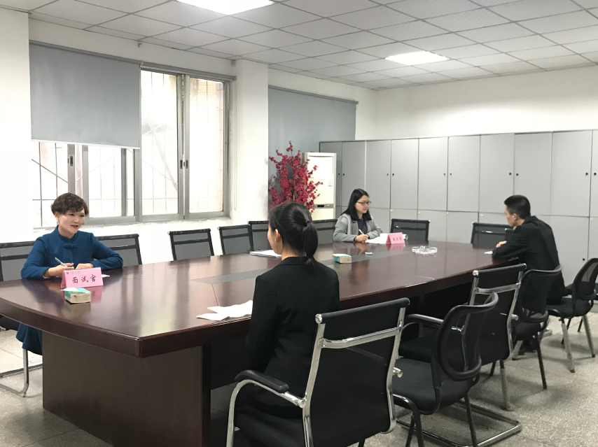 为培养更优秀的复合型、高素质、应用型管理精英人才,紧扣职业经理人的潜质培养目标,管理学院于2019年3月11日面向2017级市场营销专业本科学生举行招募活动,并于4月4日17:40在管理学院会议室举行了“PMPC特色班”面试会。管理学院邹均书记、陈可副院长、宋方伟主任、周小波主任以及宋曼老师受邀担任面试考官,分别从英语听说能力测评和管理能力测评两个环节,对37名同学进行了面试。参加面试的同学们全部身着正装,并别着自制的铭牌,精神饱满、信心十足,在考官面前尽显风采。
