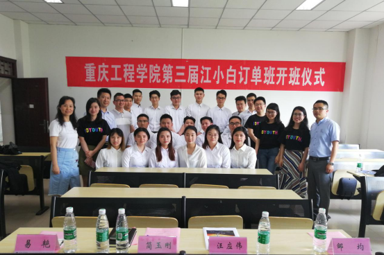 2019年4月24日,管理学院在6119教室举行了“重庆工程学院第三届江小白订单班开班仪式”。重庆江小白酒业有限公司组织中心副总经理汪应伟、人才学院经理易艳、招聘经理叶奕利,管理学院院长简玉刚、党总支书记邹均、实习实训中心主任张中义、工商管理系主任周小波参加了开班仪式。会议由江小白订单班班主任袁敏主持。