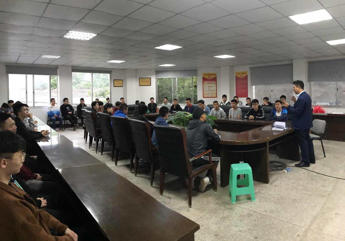 为深入贯彻习近平强军思想,响应国家鼓励大学生应征入伍的号召,发挥高校人才优势,2019年5月7日,管理学院2017级财务管理专业开展大学生征兵宣传动员会,会议由辅导员韩娟红主持,管理学院党总支书记邹均进行宣传动员,2017级财务管理专业的40余名男生参加此次动员会。