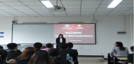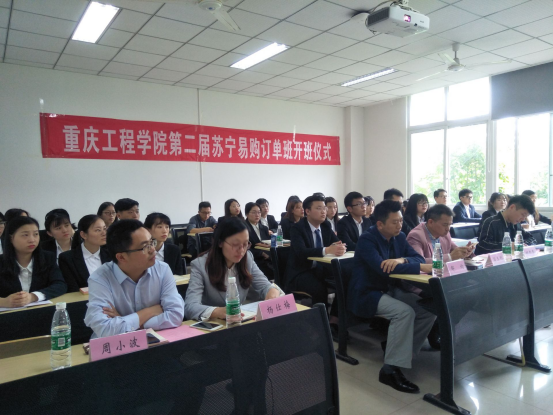2019年5月9日,管理学院在6119教室举行了“重庆工程学院第二届苏宁易购订单班开班仪式”。重庆苏宁易购校园招聘经理何思慧、管理学院院长简玉刚、党总支书记邹均、实习实训中心主任张中义、工商管理系主任周小波参加开班仪式。会议由苏宁易购订单班班主任杨仕梅主持。