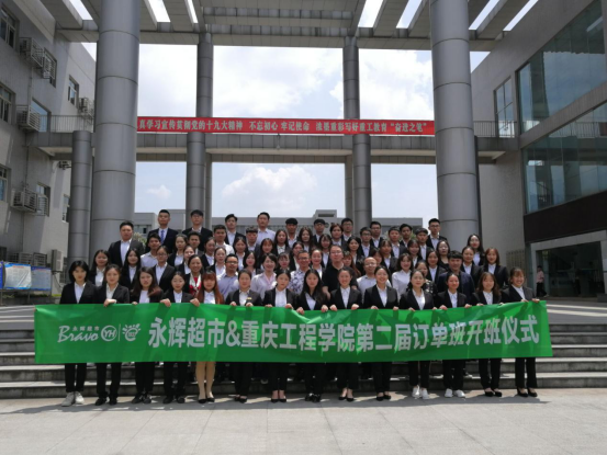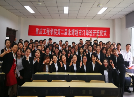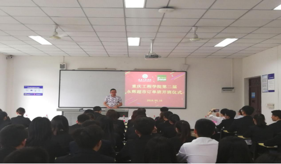 开班仪式上,管理学院简院长首先感谢了永辉超市对我校校企合作工作的支持,从首届永辉超市订单班现状来看非常的成功,我院将继续坚定与永辉超市公司深度合作。第二,简院长对订单班学生提出要求,牢记初心、做好计划、完成角色转变、通过订单班的学习交出合格的成绩单。 第三,简院长也对订单班学生提出希望,珍惜这样难得的机会,在永辉超市经验丰富的导师指导下,从理论及实践结合学习更多的有用的知识。随后永辉超市重庆渝中一区区助曾堂闳介绍1933零售精英工程人才培养计划,作为1933项目第一批带训教练,给大家分享了有关项目培训的心得,对同学们以后的培训和实习提出了中肯的建议。我校本届订单班优秀学生代表曾凤玲同学也代表了全体同学发言,建议同学们认准目标,踏实做事,把握机会使同学们倍受鼓舞,对未来信心。