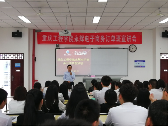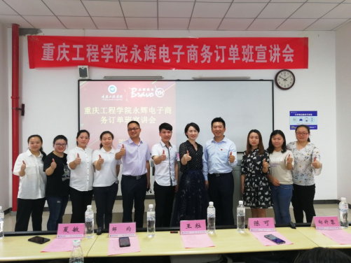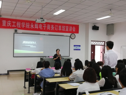 管理学院电子商务系于6月5日16:00在六教301举行永辉电子商务订单班宣讲会。永辉超市股份有限公司1933项目组经理王粒、重庆永辉超市电子商务合伙人夏敏、向针黎、永辉超市人力资源团队王利利,及管理学院党总支书记邹均、管理学院副院长陈可、管理学院实习实训中心主任张中义等共14人参加了宣讲会。本次宣讲会由管理学院电子商务系主任刘章勇主持。
