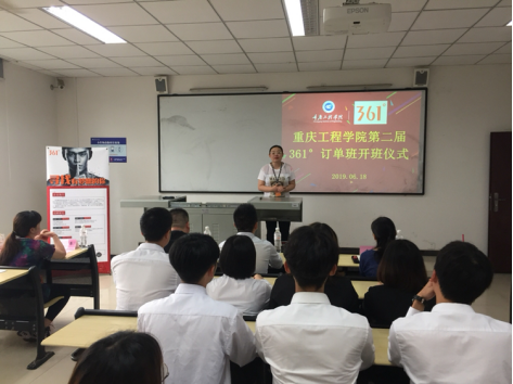 2019年619日,管理学院在6218教室举行了“重庆工程学院第二届361°订单班开班仪式”。重庆鲲跃体育用品有限公司零售总监王瑾管理学院党总支书记邹均、副院长李玲、实习实训中心主任张中义参加加开班仪式。仪式361°订单班班主任王燕楠主持。