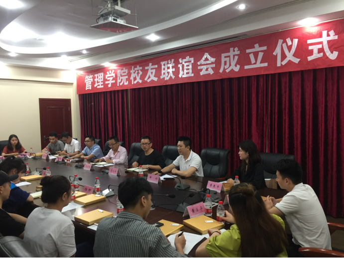 2019年6月27日上午,重庆工程学院管理学院校友联谊会成立仪式在行政楼二楼会议室举行!十六名管理学院历届校友代表欢聚一堂,学校招生就业处副处长刘达斌、管理学院院长简玉刚、党总支书记邹均、就业科长王燕楠、工商管理系主任周小波、财务管理系副主任官中明参加了本次成立大会,会议由管理学院党总支书记邹均主持。