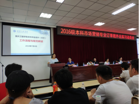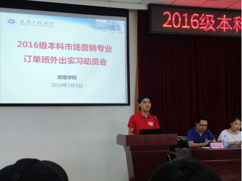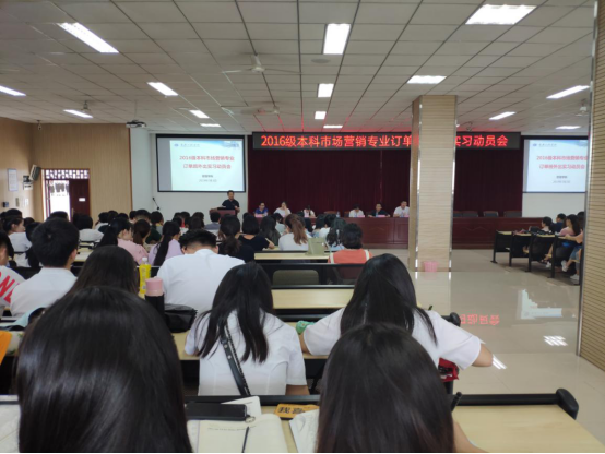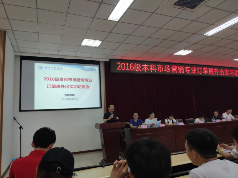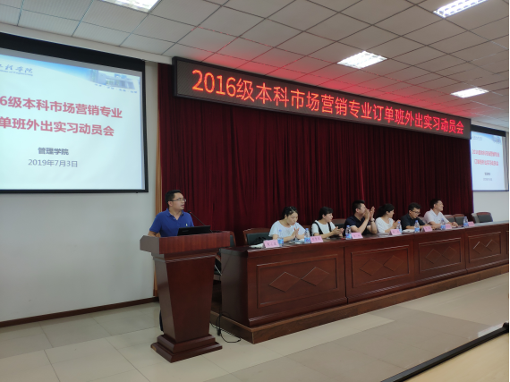 2019年7月3日下午14:00,管理学院在六教302报告厅召开了2016级本科市场营销专业订单班外出实习动员会,目的是为了让订单班同学了解外出实习的目的、意义和实习期间任务要求。管理学院党总支书记邹均、副院长李玲、实习实训中心主任张中义、工商管理系副主任但秀丽、朱凤等出席。会议由工商管理系主任周小波主持。