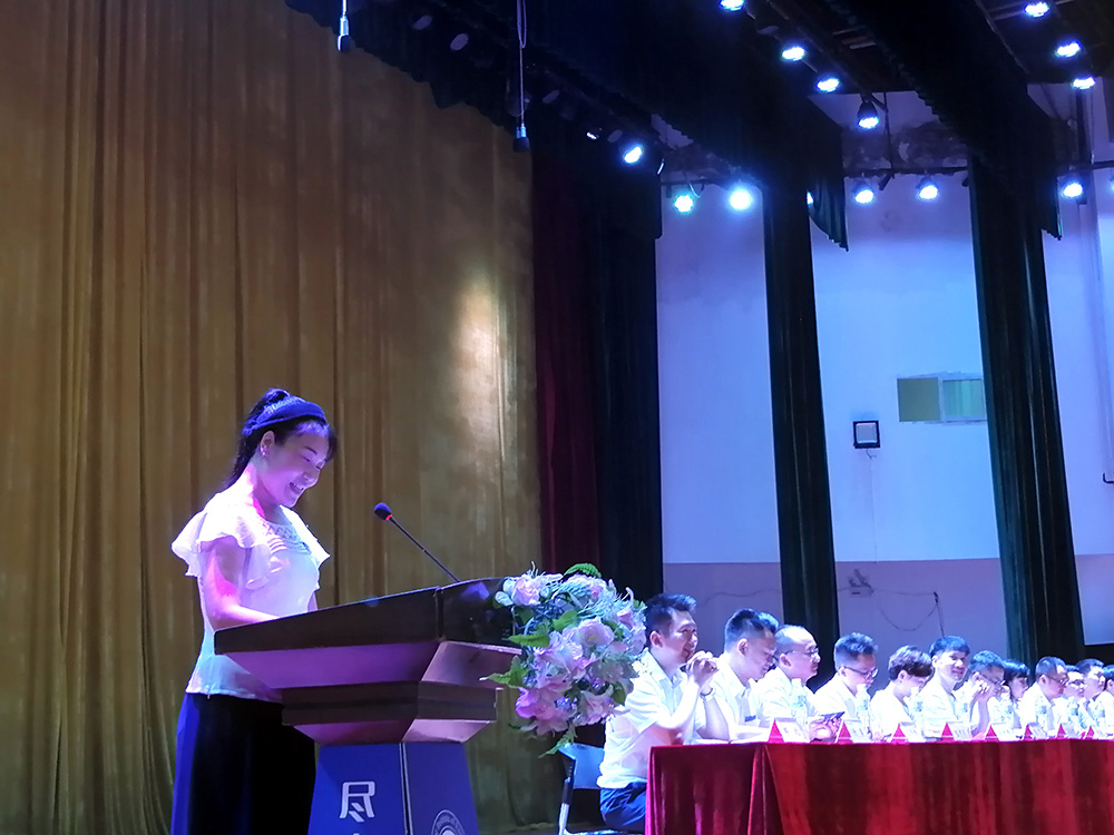 在大会进行全体奏唱《国歌》仪式后,教师代表但秀丽热情洋溢作了主题为《一路同行,做一个幸福的进取者》发言。2017级学生代表谭曾洪以《展自我才能,树管院风采》为题,带来了大三学长学姐的关心,以及前辈的祝福和寄托,为学弟学妹们如何充实的度过大学生活指明了方向。2018级学生代表潘春全从自身出发,做题为《做一个有梦想的人》的发言,更是点燃了学弟学妹们对梦想的诠释和未来的向往,希望大家一起努力学习,在管理学院收获自己的知识财富,做一名幸福的进取者,成为更优秀的自己。