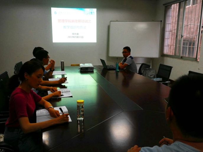 2019年9月11日,工商管理系主任周小波在管理学院3313会议室开展新教师培训,此次培训专题为教学组织与方法。