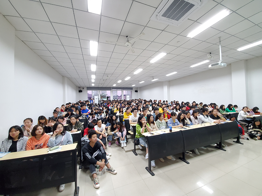 管理学院一直特别关注同学们的演讲与口才训练,良好的口才不仅能带来顺畅的沟通,还能带来自信与融洽的人际关系,为了提升管理学院学生对演讲的兴趣、增强学生的演讲能力。管理学院特邀口才中国重庆总部运营中心总监、金牌讲师、博舍商学院副院长陈春雨老师做“高情商的沟通技巧”专题讲座。2019年10月11日18:30,管理学院的240多名学生,早早来到现场等候陈春雨老师的到来,座无虚席。