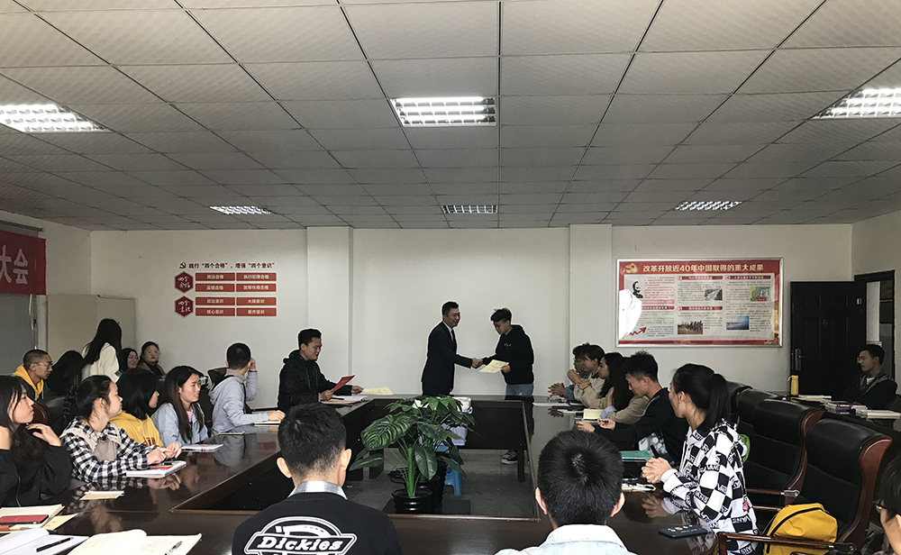 成立大会上,管理学院党总支书记邹均代表学院向每一位成员颁发聘书并讲话。他说,班级考核工作委员会的成立,标志着我院构建“院级-班级-班组”的三级班级建设工作责任机制;班级考核工作委员会要带领全体同学,举起为学校、为学院、为班级的旗帜,营造积极向上的氛围;班级考核工作委员会在工作过程当中,要改革班级建设组织机构,通过指导各班级成立学风建设工作组、寝室工作组等班级建设小组的举措,强化责任意识,树立班级、学院的良好形象。邹书记要求班级考核委员会在日常工作中要公平、公正、公开,要做到与个人成长相结合、与班级荣誉相结合、与学院形象相结合,不断提高管理学院学生的整体风貌和班集体的责任感、荣誉感。