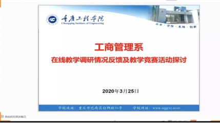 3月25日,为了进一步夯实线上教学质量,总结近期的线上教学工作,工商管理系通过视频会议的形式召开了“在线教学调研情况反馈及教学竞赛活动探讨”,工商管理系全体教师参加了本次会议,会议由潘娅老师主持。
