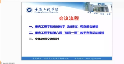 会议伊始,潘老师对《重庆工程学院在线教学阶段性调查报告》进行了解读。根据报告情况,潘老师对工商管理系在线教学情况进行了总结。目前,工商管理系教学工作总体平稳,师生总体反馈良好,线上教学工作取得初步成效。在接下来的线上教学工作中,要求老师们结合课程教学目标和特点,制定适合教学要求的在线教学方案。在教学平台/工具的选用上,要控制在1-2个,各专业各年级要做到统一;在作业布置与课后任务方面,要严格按照课程教学大纲、教学进度计划表规定的次数、内容等要求执行,在特殊情况下要科学、多元地设计作业的内容和形式,并与学生多沟通交流;在教学设计与组织方面,要做好直播或录播视频播放内容及时长的设计(原则上不提倡时间过长的直播),做好在线教学内容、方法的组织实施,确保学生学有所成。