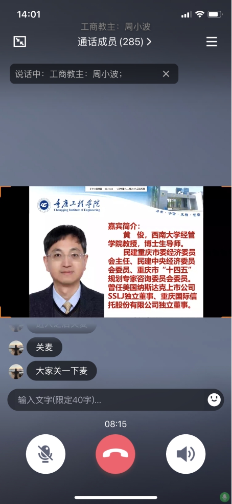 5月27日14:00-16:00,管理学院邀请西南大学黄俊教授,以视频会议的方式在线为学院师生召开专题讲座,黄俊教授以“国内外经济形势研判与后疫情时代营销创新”为题,全面分析了疫情之后的国际和国内政治经济形势,并就应对策略等内容提出了前瞻性的见解。本次讲座由工商管理系主任周小波主持,管理学院相关师生共300余人参加了讲座。