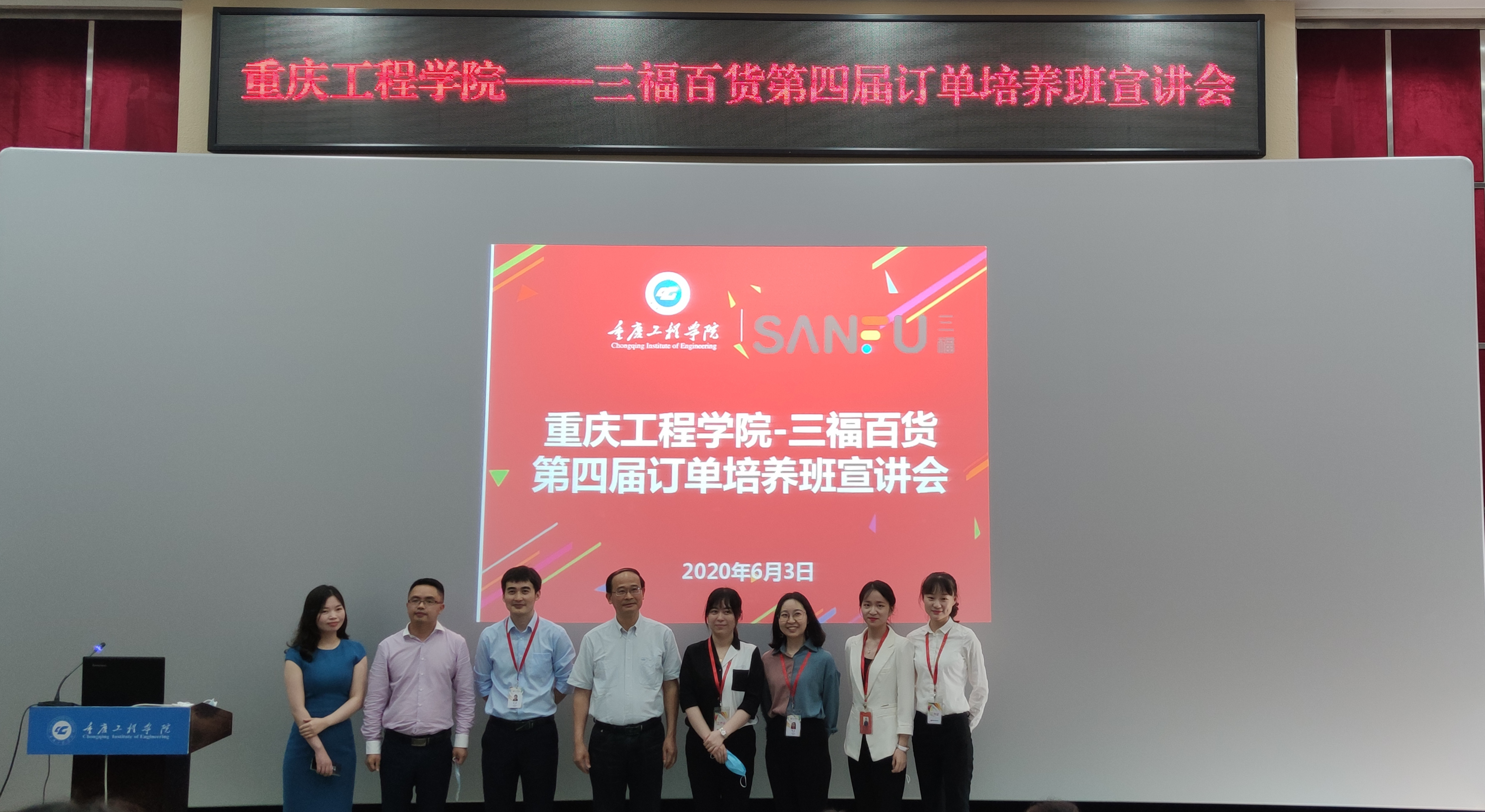 为了深入贯彻学校“校企合作、产教融合”人才培养模式,拓宽毕业生实习就业渠道,实现以需促学,学以致用的目的,2020年6月3日(周三)下午13:00,管理学院在阶梯报告厅举行了市场营销专业三福百货第四届订单培养班宣讲招聘会。福建省三福百货有限公司西南大区人事经理付莎、招聘主管赵磊一行出席了本次仪式。管理学院院长梅洪常、实习实训中心主任张中义、三福班班主任肖礼,部分教师代表以及2017级市场营销本科专业学生参加仪式。会议由管理学院工商管理系系主任周小波主持。