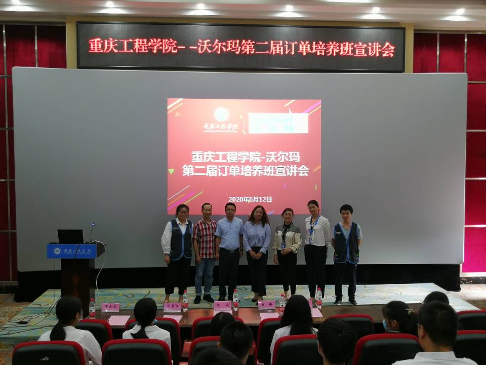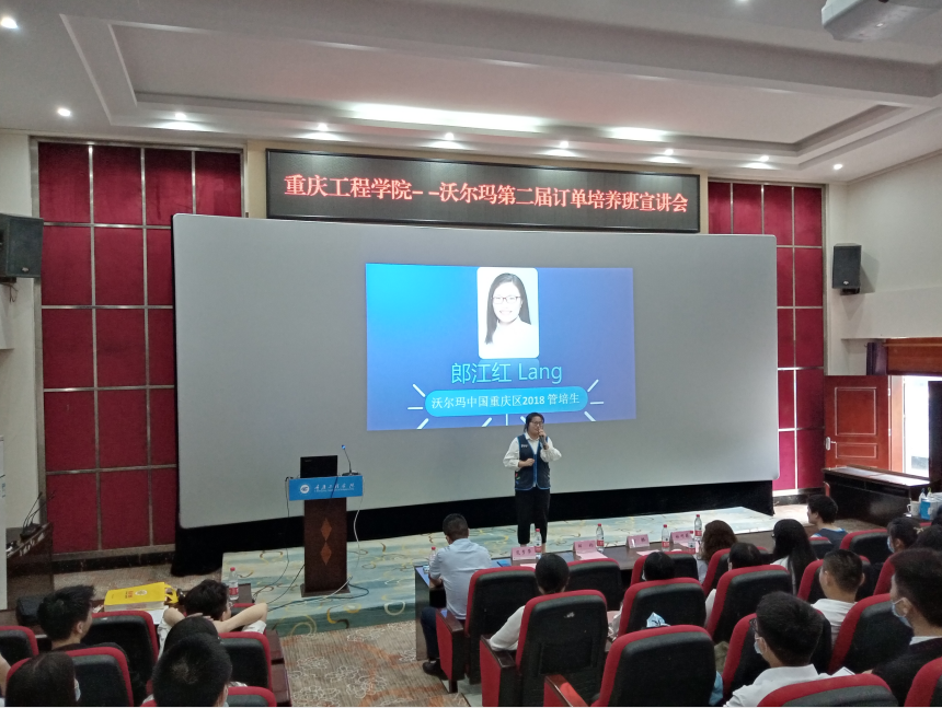 为了更好地践行重庆工程学院“通识教育+专业教育+行业教育”校企合作、产教结合的人才培养模式。拓宽市场营销专业学生就业渠道,促进校企深度合作,2020年6月12日下午13:00,管理学院在阶梯报告厅举行了沃尔玛第二届订单班宣讲招聘会。沃尔玛重庆地区人力资源经理宫桥,沃尔玛重庆大渡口店人力资源经理范梦莎,沃尔玛重庆南坪店人力资源经理杜巧莉一行到校进行宣讲招聘。重庆工程学院管理学院党总支书记邹均、实训中心主任张中义、沃尔玛订单班班主任陈茂波及2017级本科市场营销专业同学参加了此次宣讲会,会议由工商管理系主任周小波主持。