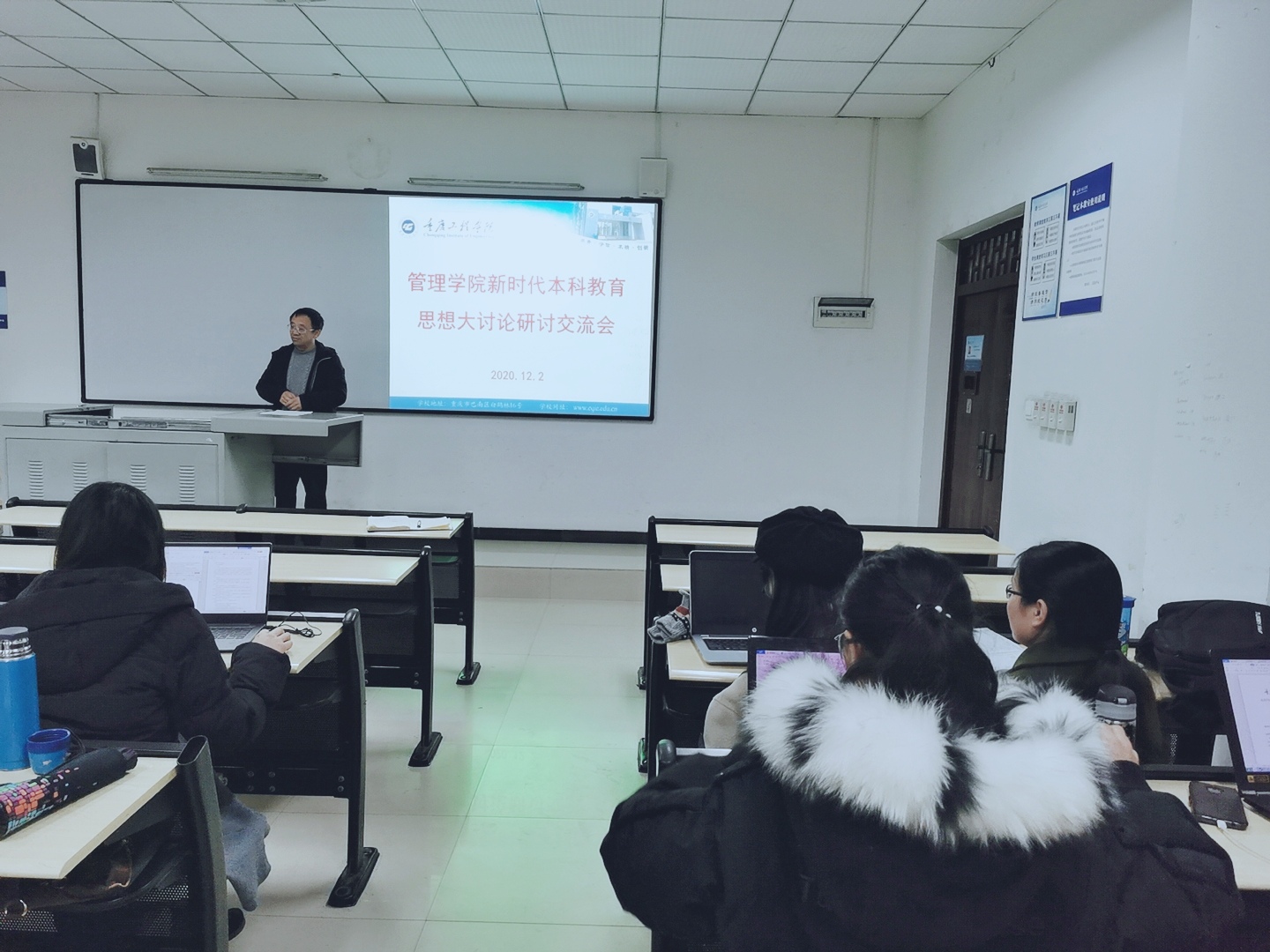2020年12月2日,在6115教室,管理学院组织召开了新时代本科教育思想大讨论研讨交流会。经过第一阶段各系部教师广泛的学习和研讨,本次活动由5位教师代表在全院进行发言分享和交流。