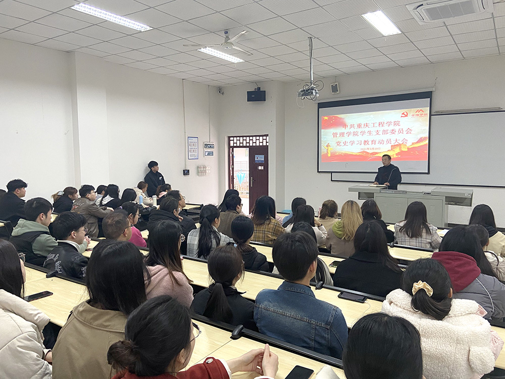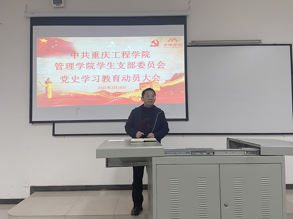 为深入贯彻落实中央和学校党委党史学习教育动员大会精神,喜迎中国共产党百年华诞,2021年3月10日15:00,管理学院学生支部在六教202召开党史学习教育动员大会。
