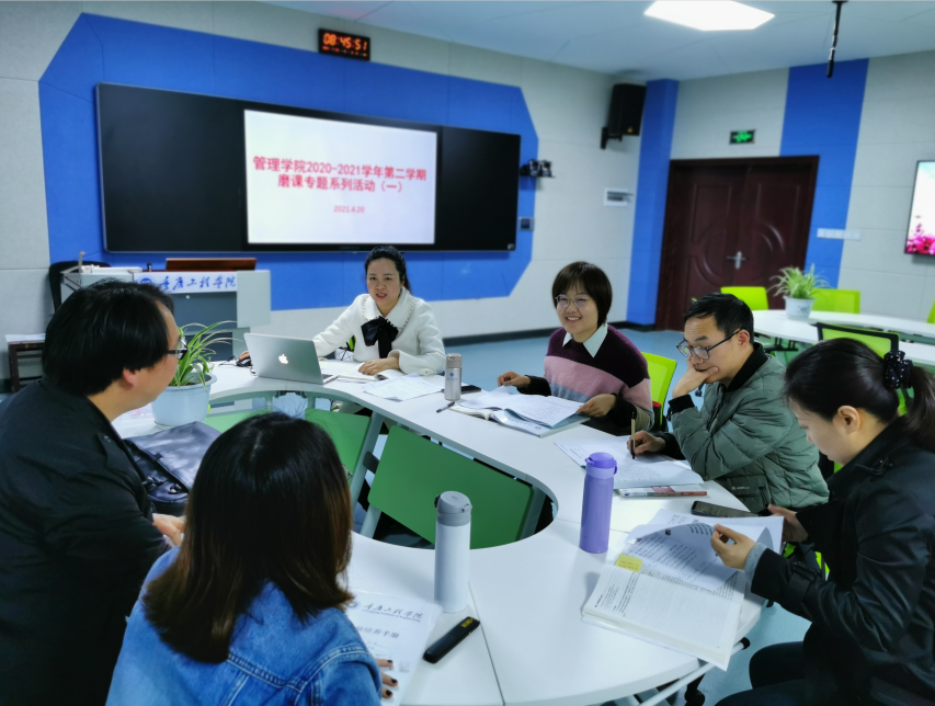 2021年4月20日8:40-11:30,教师发展中心培训室,管理学院组织开展2020-2021学年第二学期教师磨课专题系列活动,本学期新入职的4位新教师参加了第一场磨课活动。教师发展中心主任陈可、管理学院副院长李玲、会计系副主任官中明、指导老师王翅参加了本次研讨活动并与老师们进行互动交流。