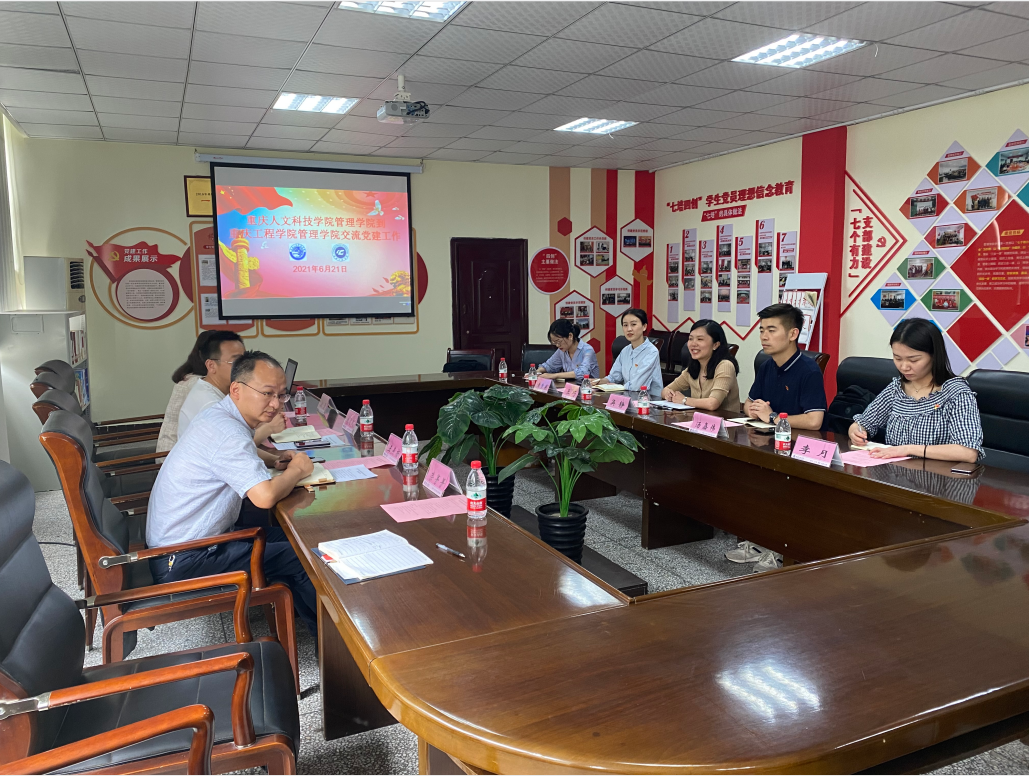 我院学生党支部始终围绕“七个有力”要求,扎实推进样板支部建设工作,并成功通过验收。为进一步推进高校党建工作深入开展,相互学习交流党建工作经验和成功做法,2021年6月21日上午10:30,重庆人文科技学院管理学院党总支书记吴静、党总支书记助理王巧、学生第一党支部书记汤嘉伟、学生第二党支部书记黄梦菲、团总支书记李月到我院进行党建工作交流,我院党总支书记刘达斌、专职组织员荣菁菁、学生第一党支部书记宋曼、学生第三党支部书记王燕楠出席了本次会议。本次会议由刘达斌同志主持。