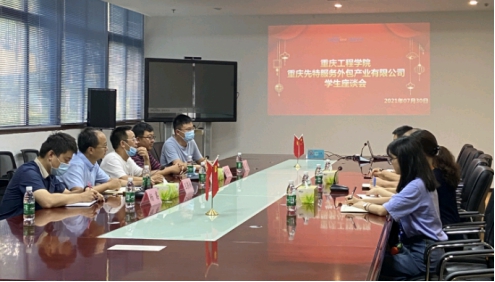 2021年7月30日上午10:00,管理学院党委书记刘达斌、副院长李英吉博士率管理学院教师一行抵达重庆永川大数据产业园重庆先特服务外包有限公司(以下简称“先特”)进行企业走访,并对订单班毕业学生进行探望。重庆先特服务外包产业有限公司人事行政总经理黄诚、企业方行政部(校招部)经理李智远接待了书记一行。管理学院就业科科长王燕楠、电子商务系系主任宋超、订单班班主任教师杨睿等随行一同前往。