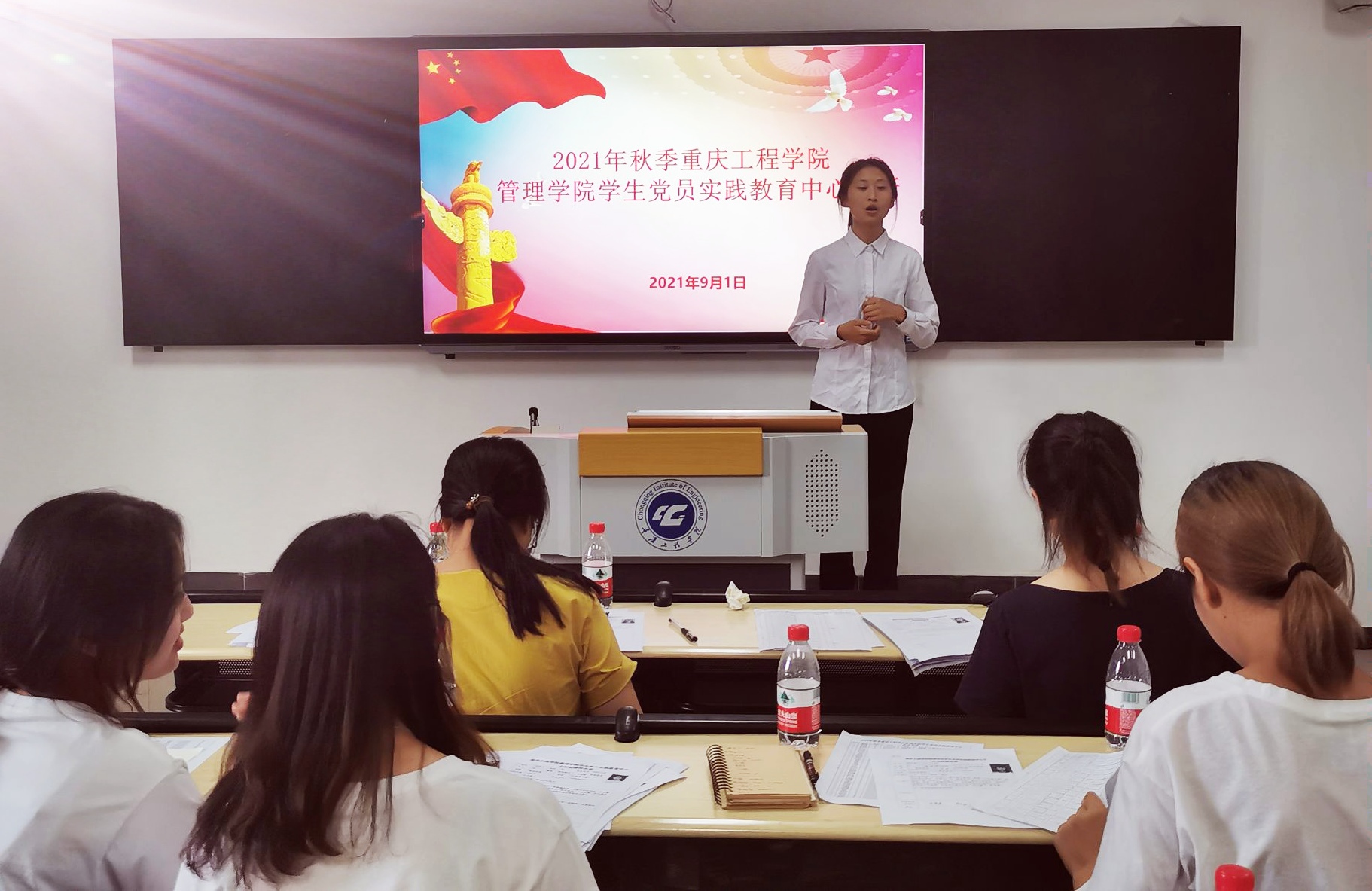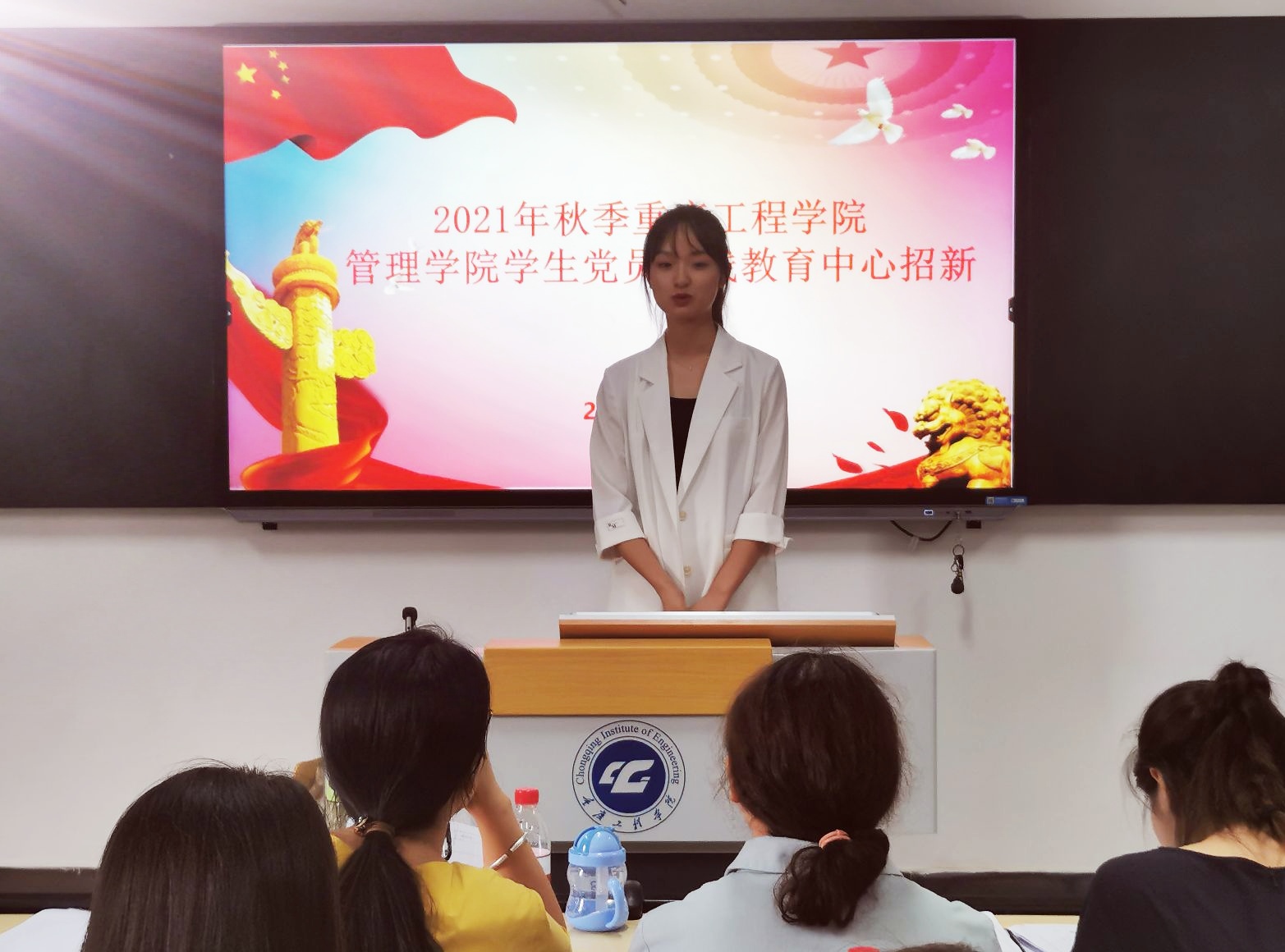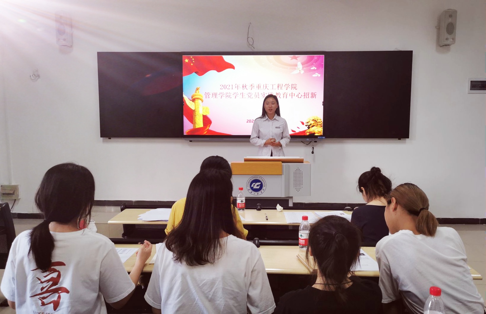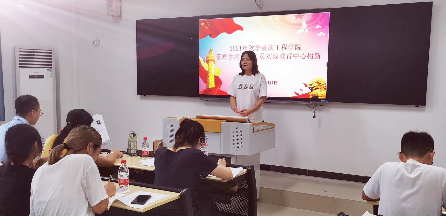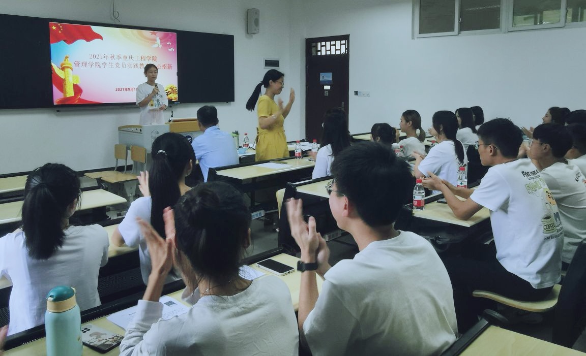 新学期新伊始,为尽快给学生党员干部队伍注入新鲜血液,让我院学生党建工作焕发绚烂生机,重庆工程学院管理学院学生党员实践教育中心于2021年9月1日13:00在第六教学楼118教室开展了招新活动,我院2020级入党积极分子同学参与其中。本次招新活动由管理学院专职组织员荣菁菁、学生第一党支部书记宋曼、学生第二党支部书记曾艳灵、学生第三党支部书记王燕楠以及10名中心干部担任面试官。