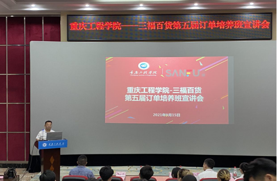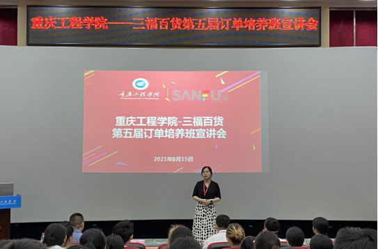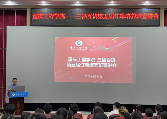 为了深入贯彻学校“校企合作、产教融合”人才培养模式,拓宽毕业生实习就业渠道,2021年9月15日13:30,管理学院在阶梯报告厅举行了市场营销专业三福百货第五届订单培养班宣讲招聘会。福建省三福百货有限公司西南大区人事经理付莎、招聘主管赵磊一行出席了本次仪式。管理学院党总支书记刘达斌、三福班班主任陈娟、18级市场营销专业辅导员赵慧慧以及2018级市场营销专业学生参加了本次宣讲会。会议由管理学院工商管理系系主任周小波主持。