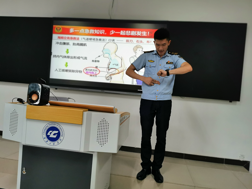 唐教官用生动幽默的语言,为全体教师分享了海姆立克急救法、家庭消防安全预防和灭火知识,以及最新的安全生产法制法规知识。在教授海姆立克急救法时,唐教官请老师们两两一组、现场演练,帮助大家找对急救的关键位置和关键动作。他告诉大家这个急救法适用于所有人群,对于高危人群比如婴幼儿、老人等,学会这套急救法尤其重要。
